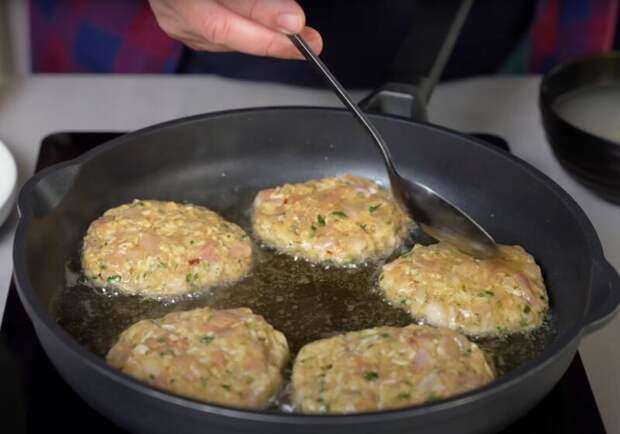 Поливаем верхушку котлет горячим маслом, жарим с обеих сторон до золотистого цвета.