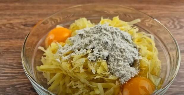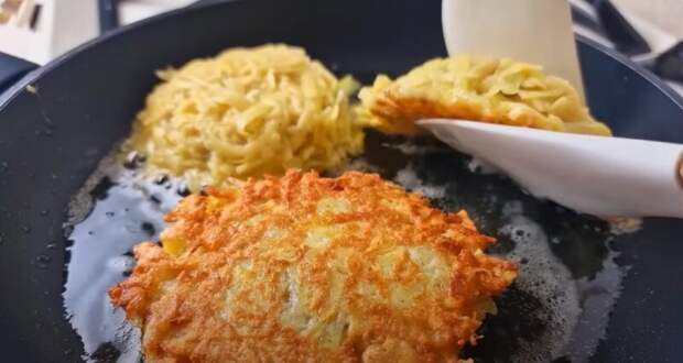 Картофельную массу отжимаем от лишней воды, смешиваем с яйцами, солью и мукой. На сковороде разогреваем растительное масло, обжариваем лепешки из картофельной смеси.