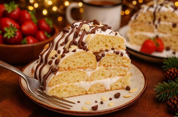 Получается довольно быстрый сладкий сметанный торт. Такой десерт выглядит необычно, при этом готовится максимально просто.