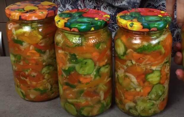 Например, есть маринованный салат, который можно хранить в банке. Он не портится, при этом выглядит презентабельно и вкусный.